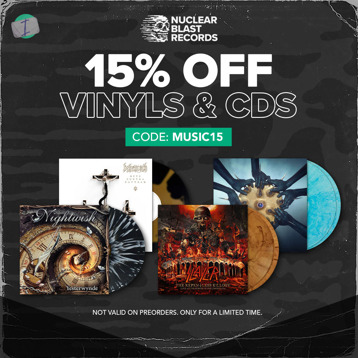 As the number one heavy metal record label, Nuclear Blast specializes in offering items from metal icons of the following genres: death metal, thrash metal, black metal, gothic, hard rock, doom, hardcore, symphonic metal, power metal, pagan metal, and progressive metal. In our online metal store, you can get your favourite albums on vinyl, including pre-ordering exclusive drops of colored vinyl bundles and other limited-edition pieces. Along with the extensive vinyl selection, you can shop for your favourite bands and all-time heavy metal classics in CDs + DVDs/Blu-Rays and box sets at Nuclear Blast online metal store.