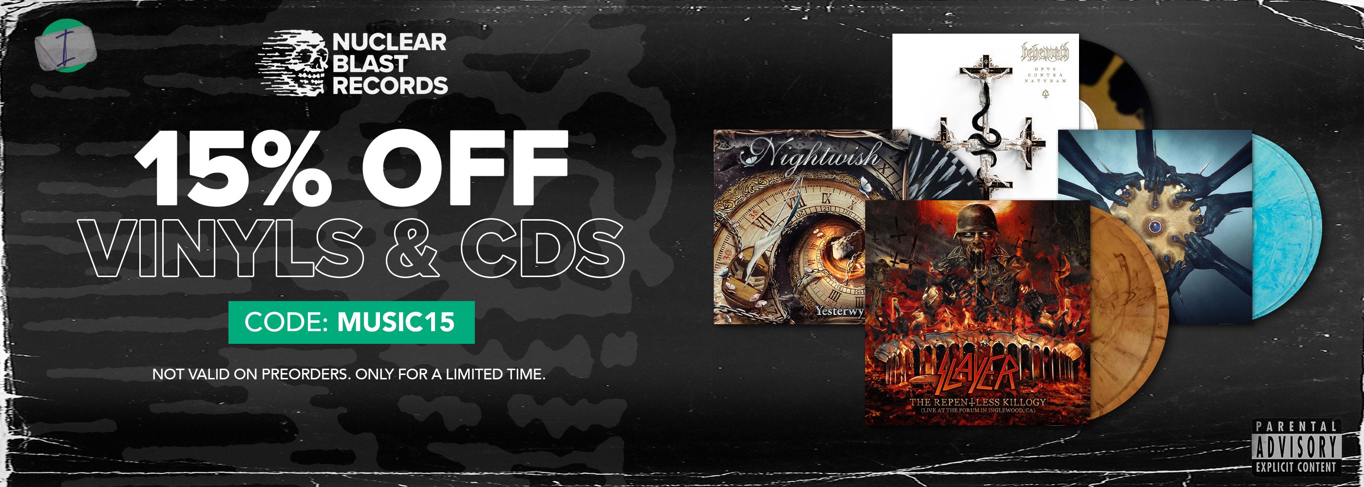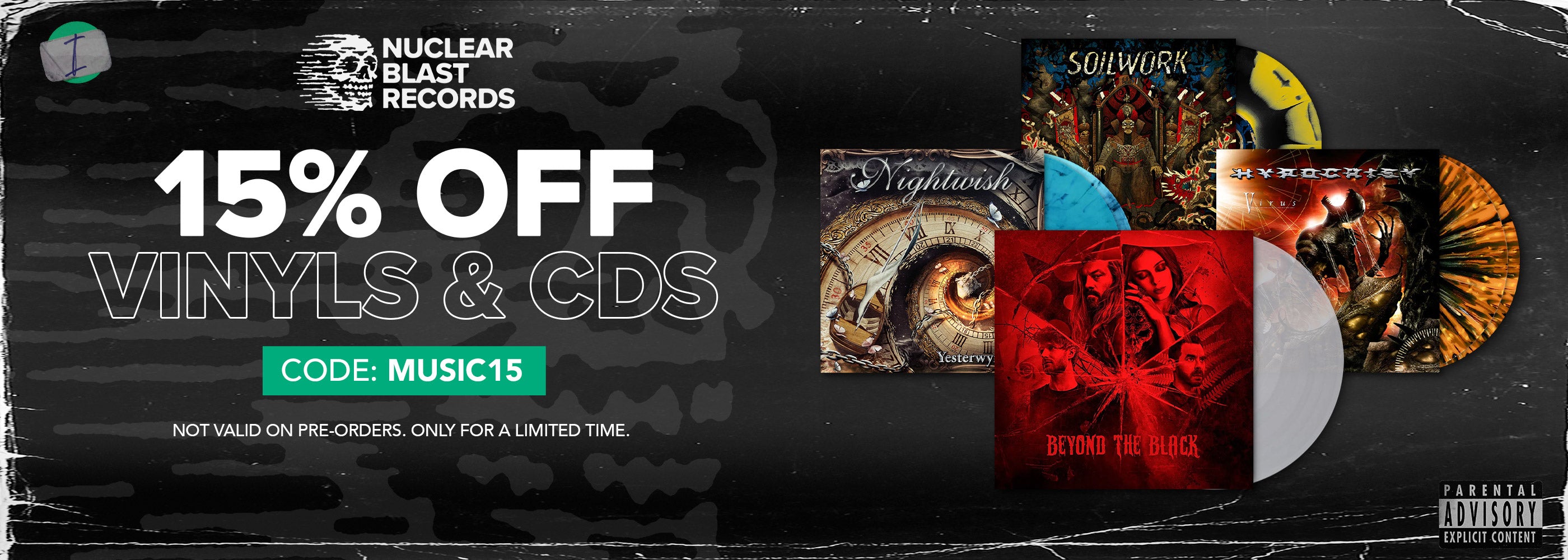 Nuclear Blast Records is among the world's leading heavy metal online shops, when it comes to ordering CDs, vinyl records, and Blu-Ray/DVDs, as well as accessories and merchandise such as band T-shirts, hoodies, patches, and a whole lot more from the heavy metal scene. At the Nuclear Blast online metal store, you'll find over 15,000 items from more than 1,000 bands - pieces to add to your music collection, merch to get into for concerts and gigs, and stuff to gift to heavy metal fans you know.
