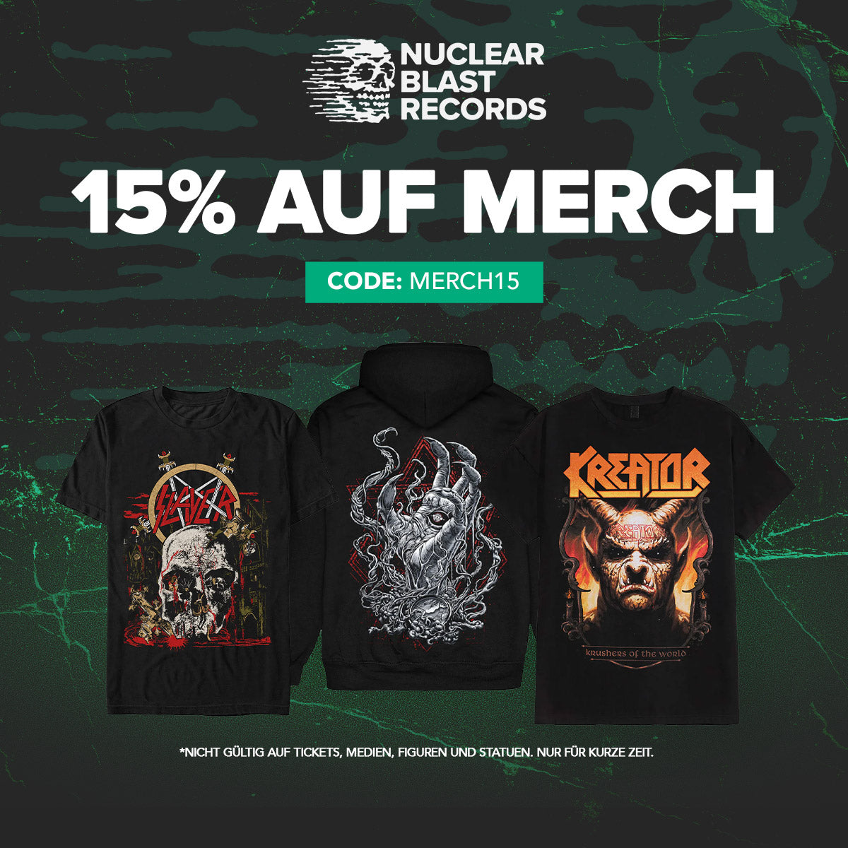 Nuclear Blast Records gehört zu den weltweit führenden Metal-Online-Shops, wenn es um die Bestellung von CDs Vinyl-Schallplatten und Blu-Ray/DVDs sowie von Zubehör und Merchandise wie Band-T-Shirts, Hoodies, Aufnäher und vielem mehr aus der Heavy-Metal-Szene geht. Im Nuclear Blast Record-Shop findest du über 15.000 Artikel von mehr als 1.000 Bands – CDs/DVDs oder Vinyle, die du in deine Musiksammlung aufnehmen kannst, Merchandise-Artikel für Konzerte und Auftritte und Dinge, die du Heavy-Metal-Fans schenken kannst.