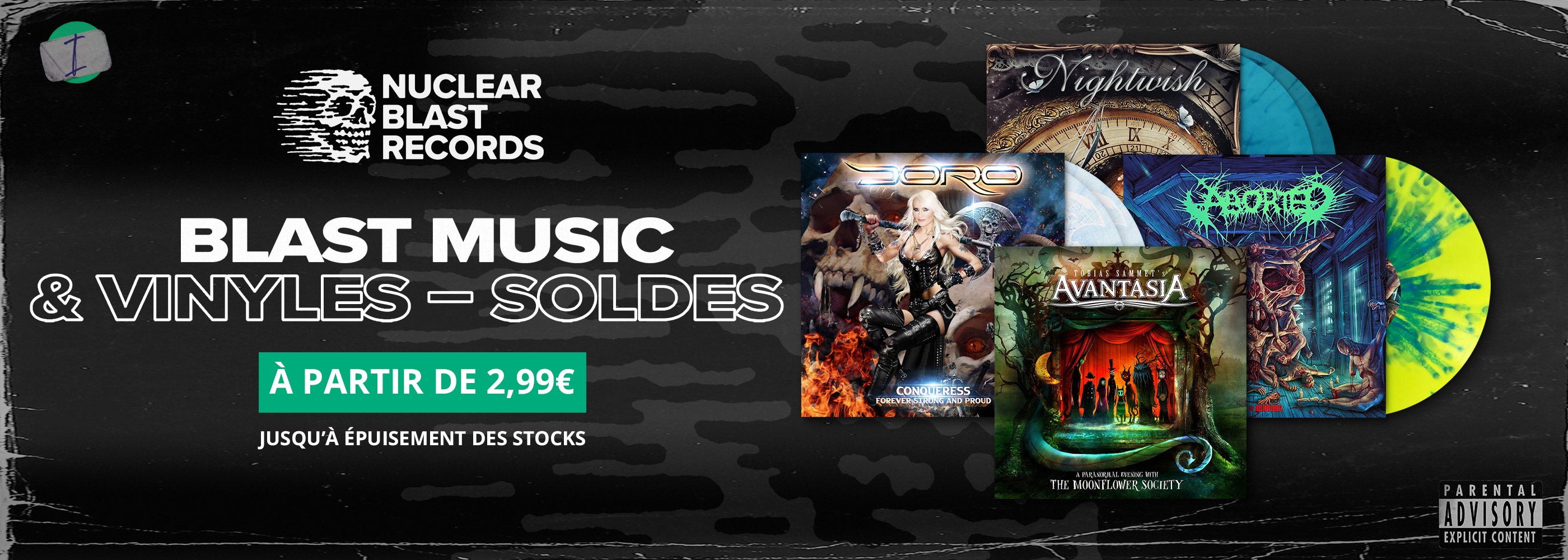 En tant que label numéro un de heavy metal, Nuclear Blast se spécialise dans l'offre d'articles d'icônes du métal des genres suivants : death metal , thrash metal , black metal , gothique, hard rock , doom, hardcore, métal symphonique, power metal , pagan metal, et métal progressif. Dans notre boutique de métal en ligne, vous pouvez obtenir vos albums préférés sur vinyle, notamment en précommandant des lots exclusifs de lots de vinyles colorés et d'autres pièces en édition limitée. En plus de la vaste sélection de vinyles, vous pouvez acheter vos groupes préférés et les classiques du heavy metal de tous les temps sous forme de CD + DVD/Blu-Rays et coffrets sur la boutique de métal en ligne Nuclear Blast.
